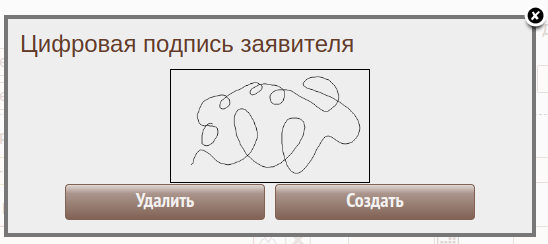Будет обновлена модальная форма и отобразится сохраненная подпись заявителя.