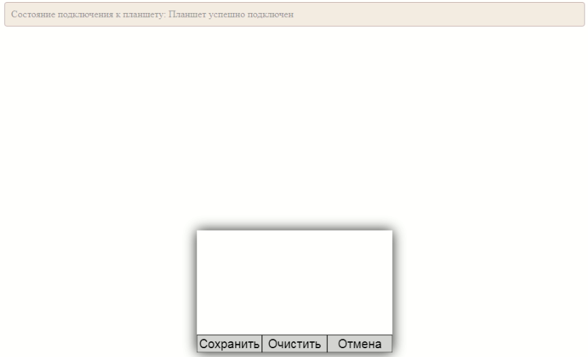 Для считывания подписи заявителя будет открыта новая вкладка которая попробует обратиться к планшету для считывания подписи заявителя. В верхней части экрана будет отображаться состояние подключения к планшету.