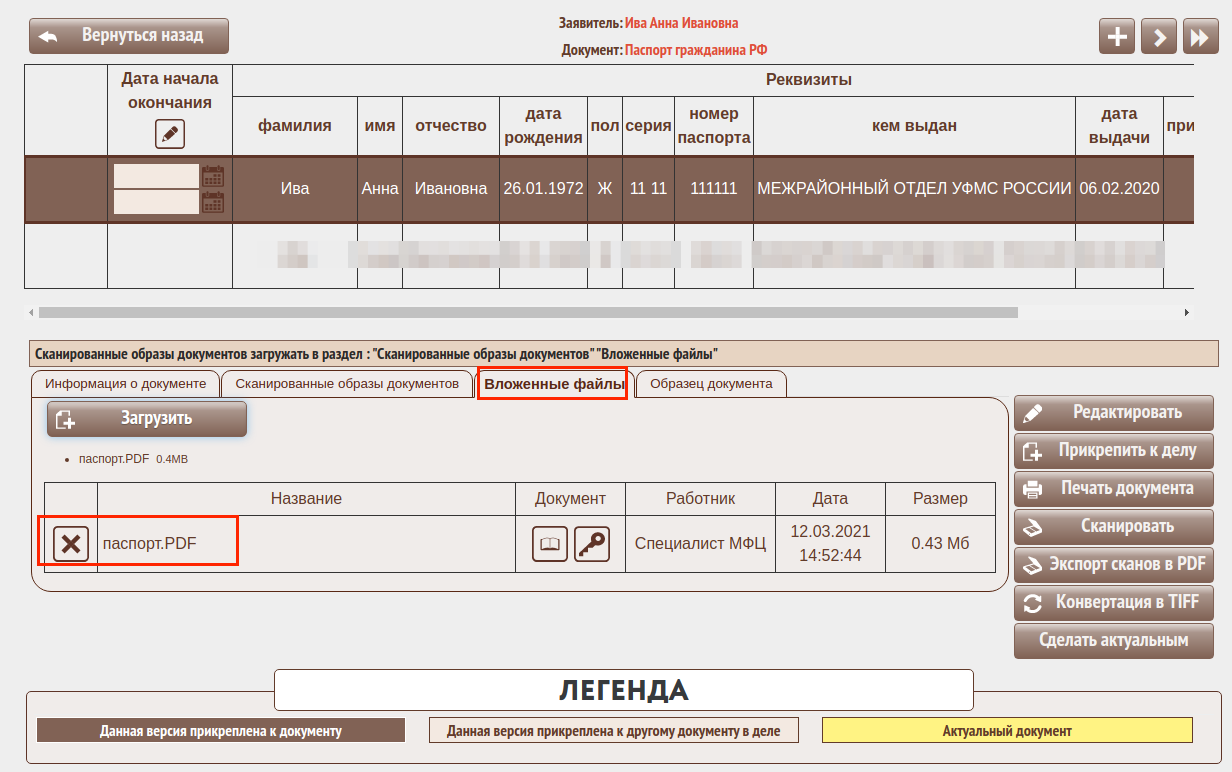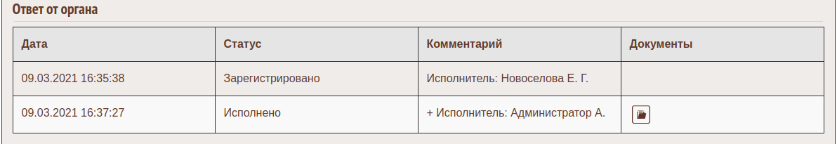 В колонке документы-кнопка просмотра файлов с документами-ответами органа
