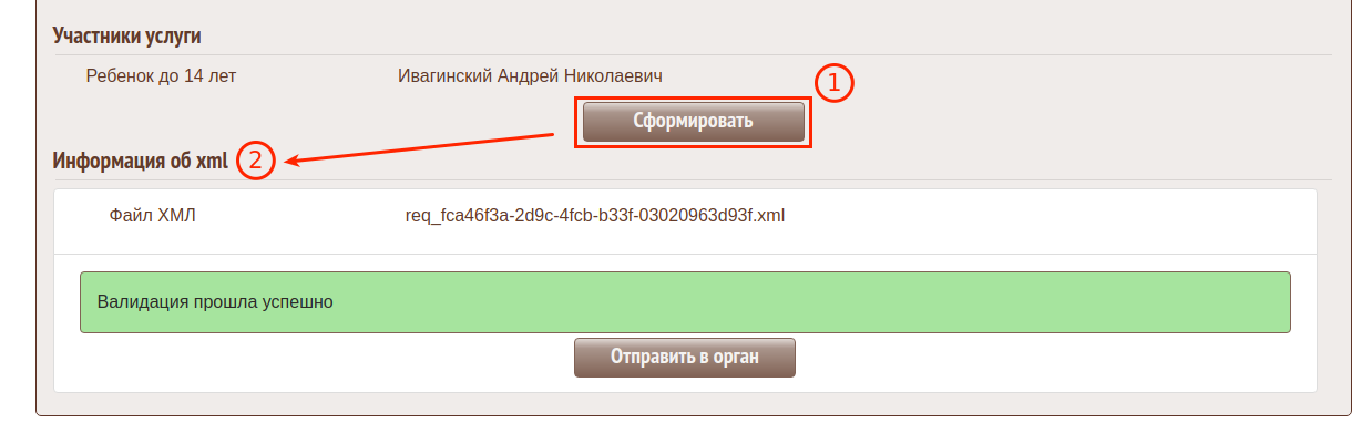 После просмотра формы необходимо произвести формирование ХМЛ файла, для проверки корректности введенных данных. Если при валидации возникнут проблемы, то будет выведено соответствующее сообщение.