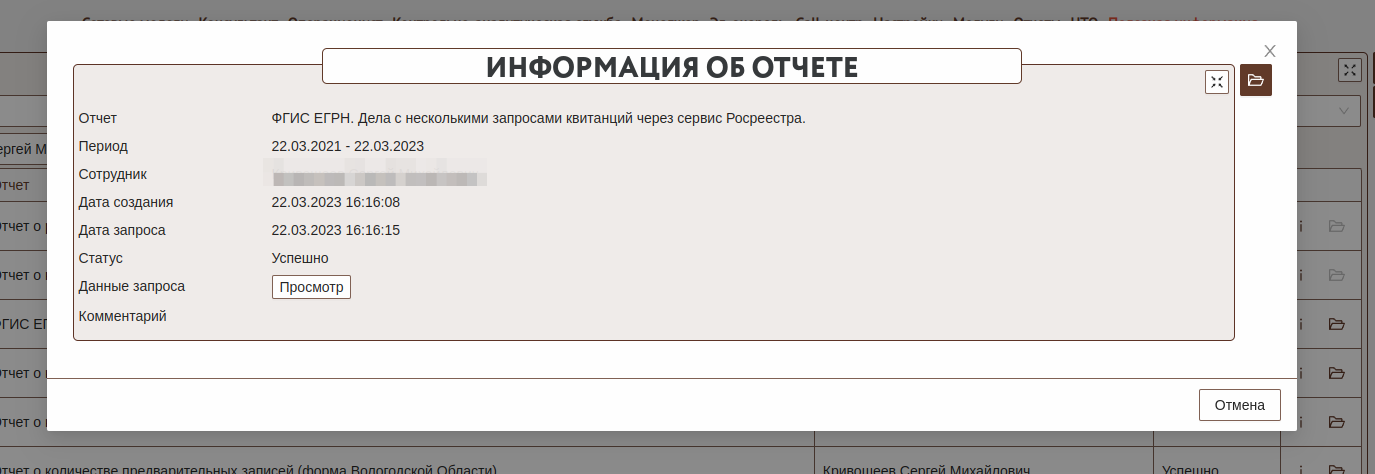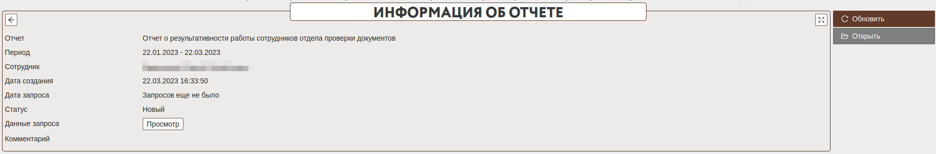 После успешного формирования отчета можно будет открыть печатную форму отчета для просмотра информации.