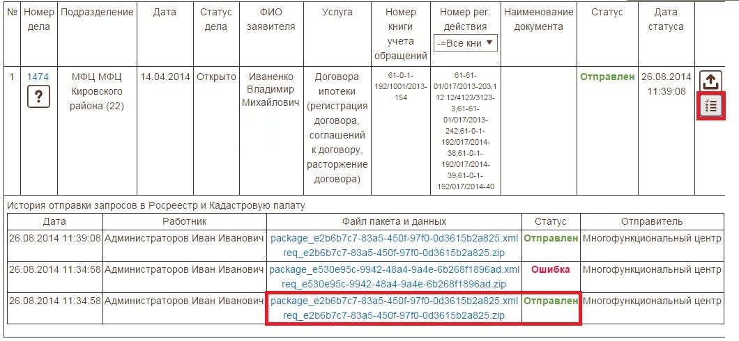 Если возникли проблемы при передачи ХМЛ пакетов между МФЦ и Кадастровой палатой есть возможность повторить отправку пакетов.