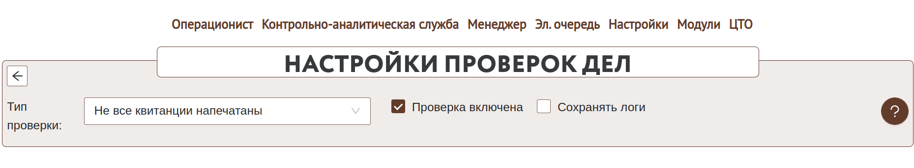 Данная форма позволяет включать/отключать некоторые проверки дел в МФЦ. Для настройки того или иного типа проверки нужно выбрать его в соответствующем выпадающем списке.
