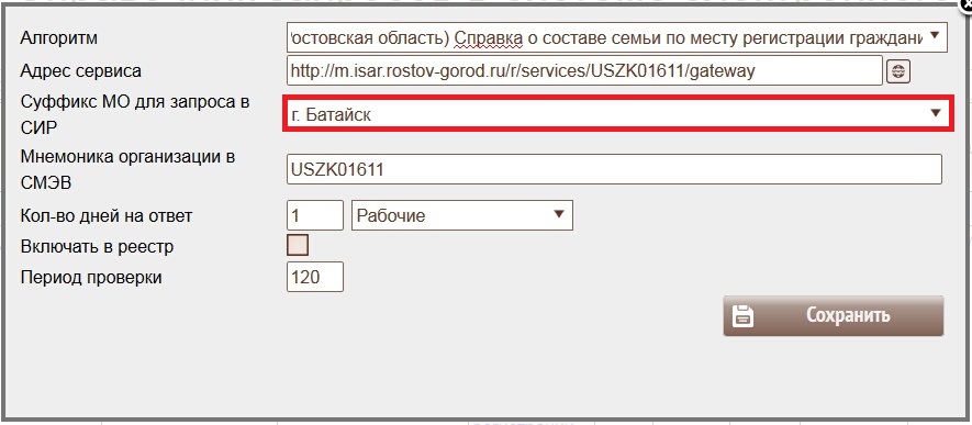 Настройка префиксов муниципальных образований для запросов к СИРам