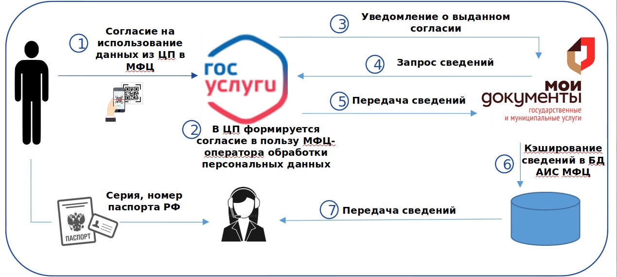 - От МФЦ в автоматическом режиме отправляется запрос по адаперу 1345 через вид сведений "Запрос персональных данных пользователя ЕСИА при наличии его согласия"