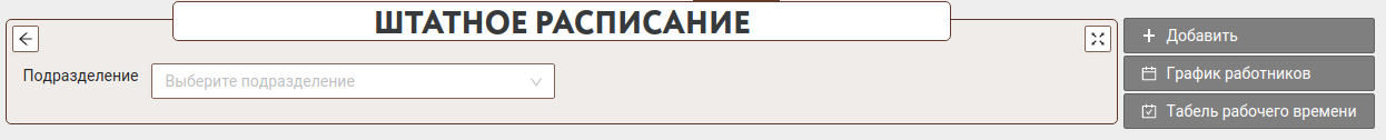 Для работы со штатным расписанием необходимо выбрать подразделение.