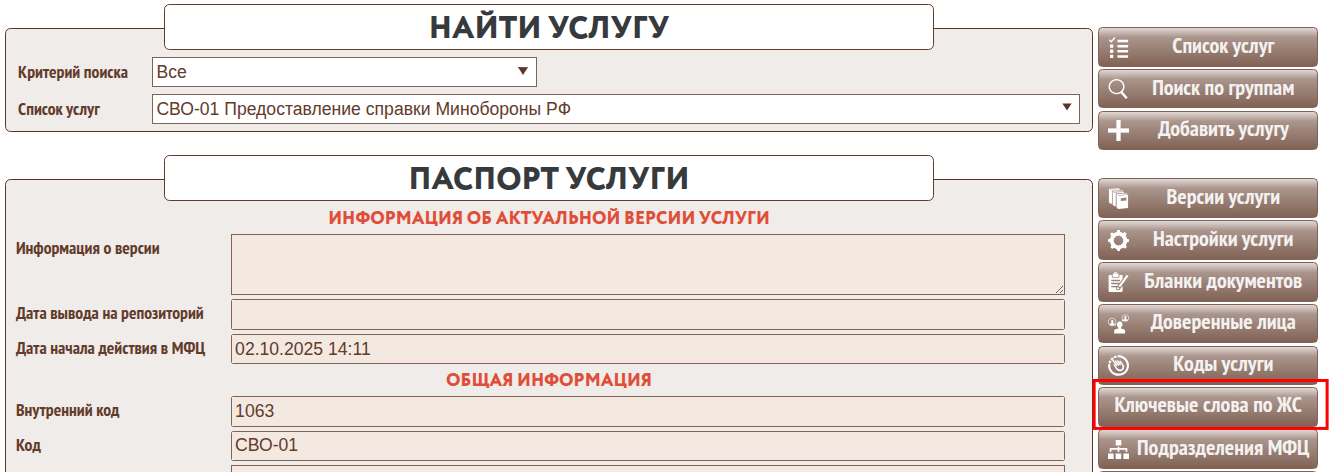3.Указать на каждой услуге набор ключевых слов, которые в дальнейшем определят необходимость персонифицированного информирования участника СВО в его жизненной ситуации.