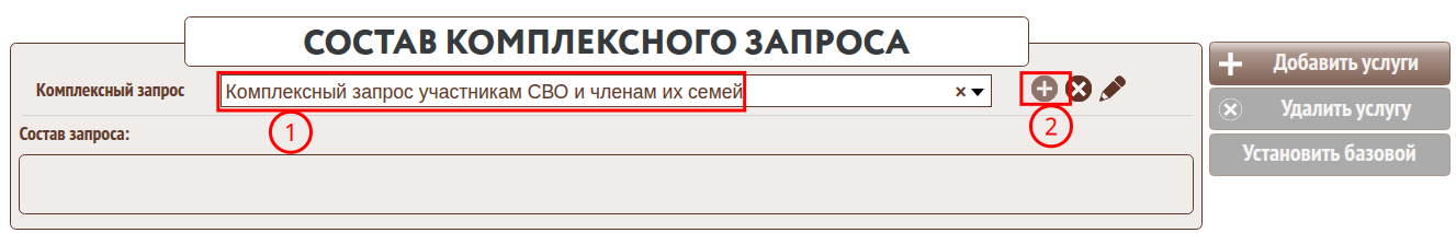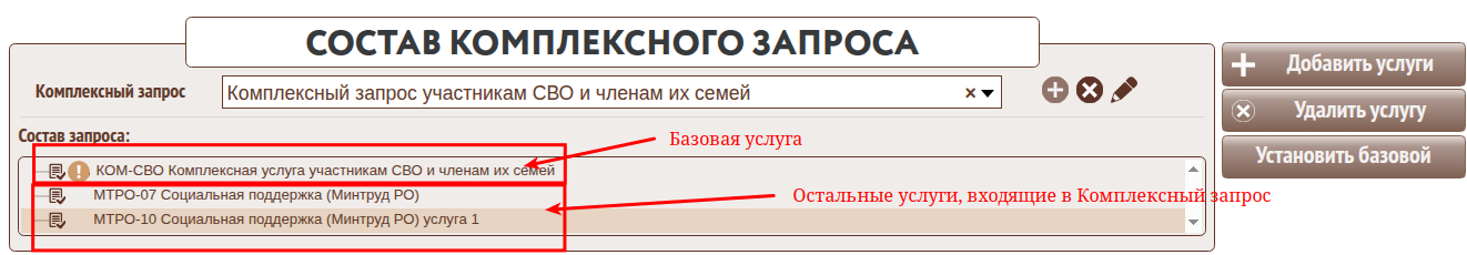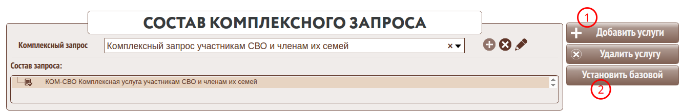 7.Внести в «Комплексный запрос участникам СВО и членам их семей» состав услуг относящихся к участникам СВО. В данный запрос прежде всего необходимо внести базовую услугу.