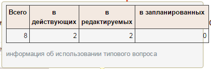 При выборе вопроса показывается информация о том, сколько раз он использовался в порядках оказания консультаций